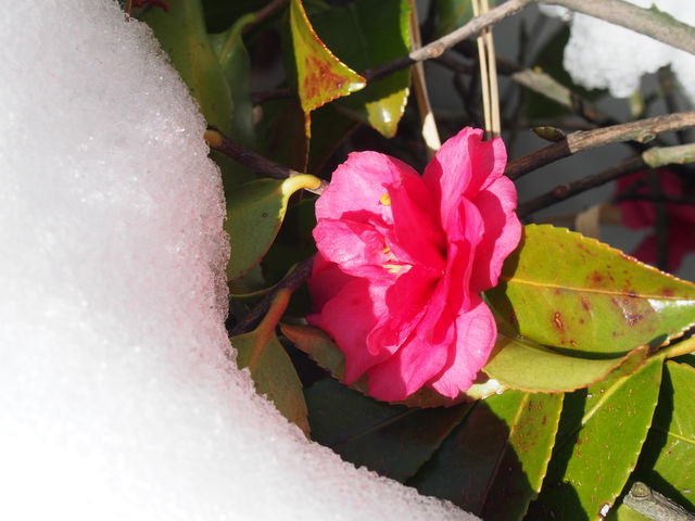 わたしの大好きな赤い椿と白い雪...
