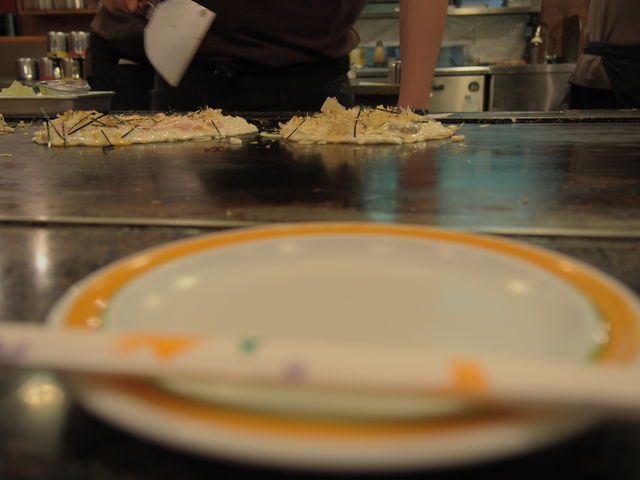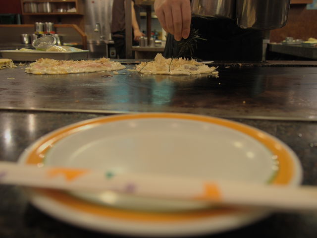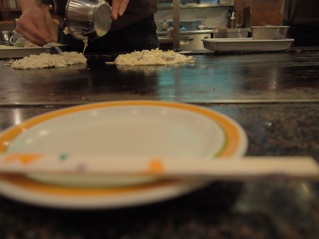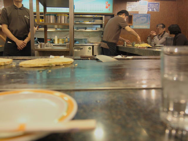 鉄板を囲んでぐるりとお客さんが座って、目の前で焼くのを見ながら待ってます。