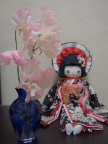 昔、昔から家にあった切子の青い花瓶に挿して...