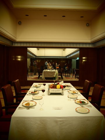 お食事もこんな長テーブルで...ドレスアップしないとね。