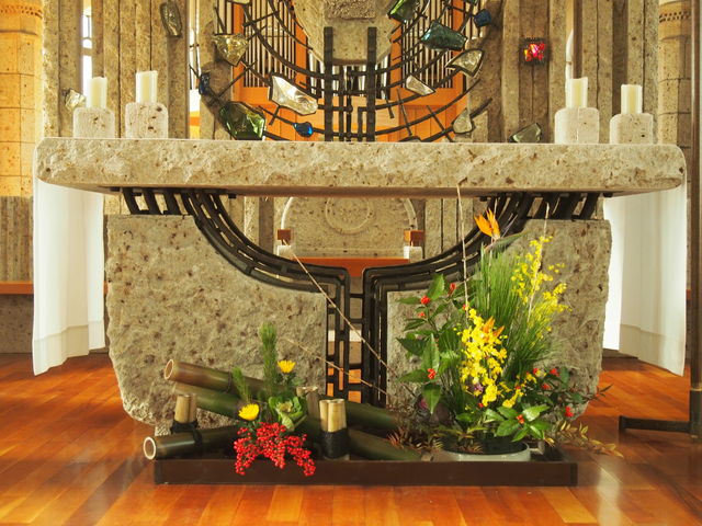 教会の祭壇もお正月の和の雰囲気が...