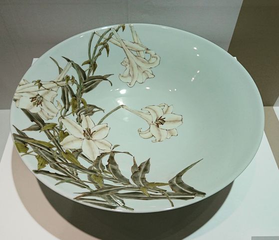 女の人ばかりの焼き物や塗り物、刺繍などの展示会です。