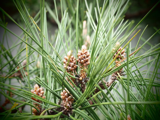 実家の玄関前の松に新芽が...