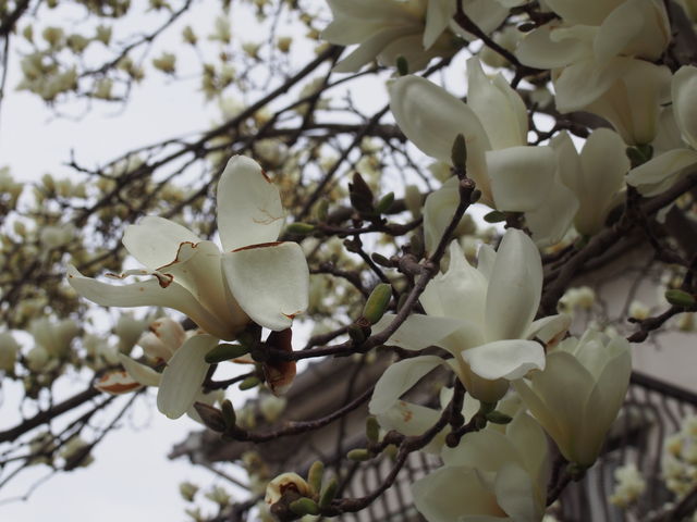 自宅前のおうちの白モクレンがもう満開