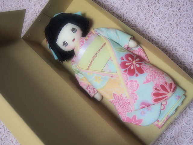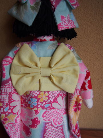 このお人形のお着物は古布でできています。