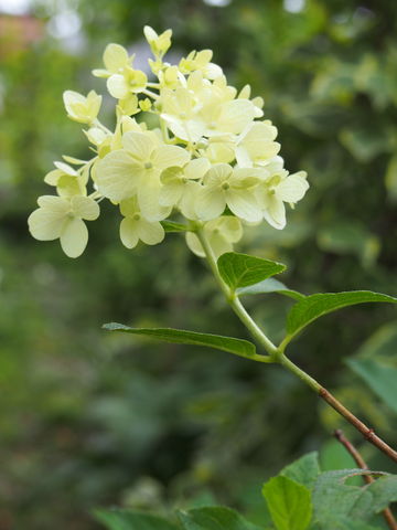 西側のすみっこに植えた白い紫陽花がちょこっと咲いていました。
