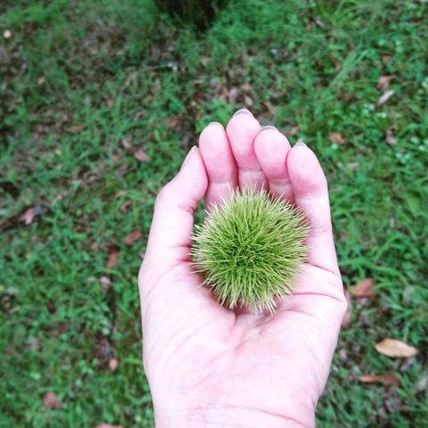 まだ青い小さな栗の実がぽとんと落ちていましたよ。