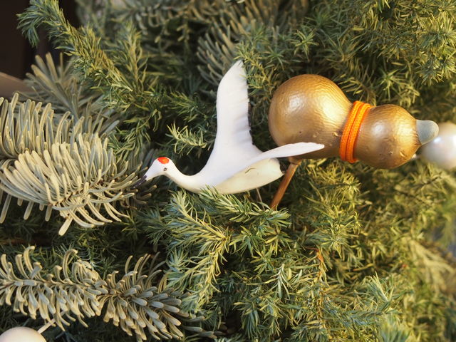 こちらの水引細工は鶴、亀&松竹梅です。わかりますか?