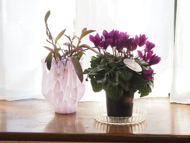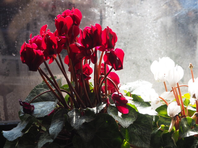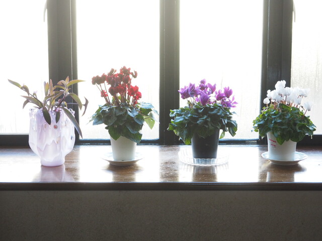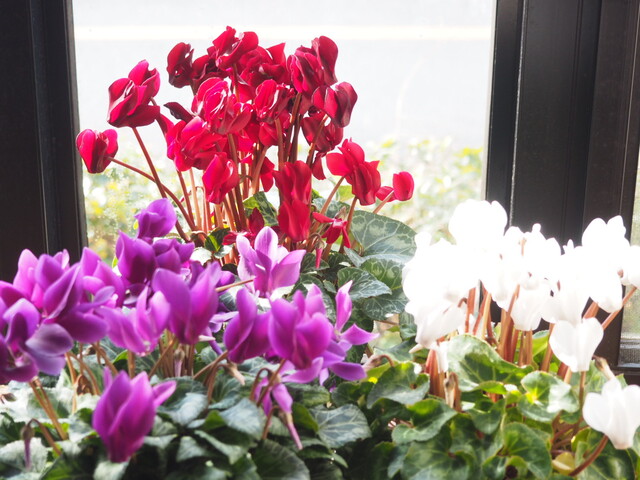年末に激安で買った(笑)シクラメンを並べてみました。