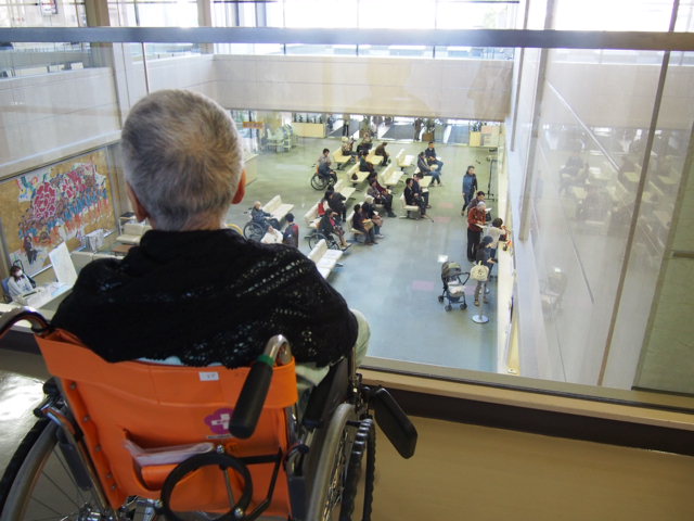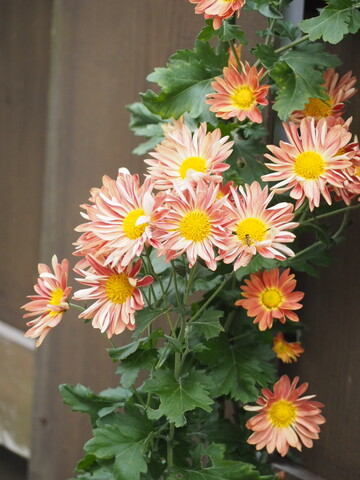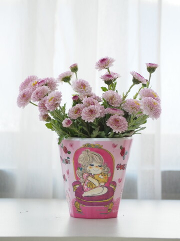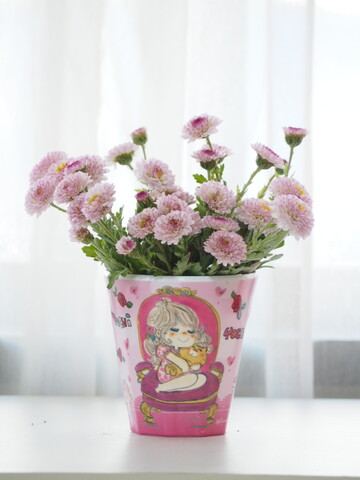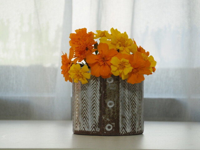 毛糸のカーディガンを着た人が花束を持ってるみたい。