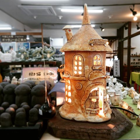クリスマスを意識したディスプレイのランプから黄色い光がこぼれています。