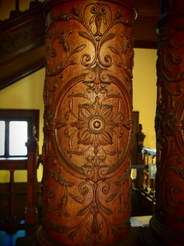 邸宅の柱、壁、天井の細工は見事で