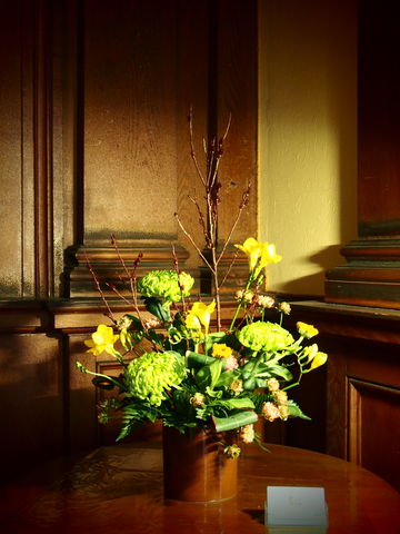 ステンドクラスが美しい玄関。