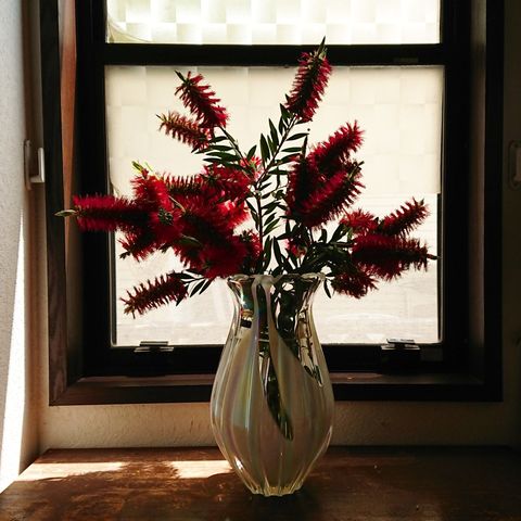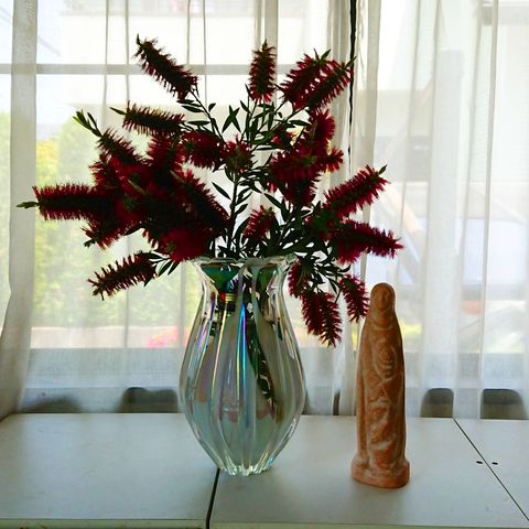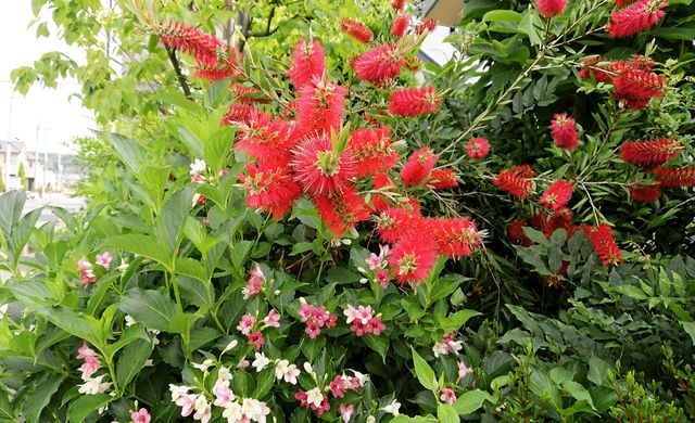 庭のブラシの木が真っ赤にどっさり咲きました。