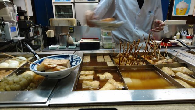 横のお年を召したご夫婦は好きなおでんを次々に注文しつつ