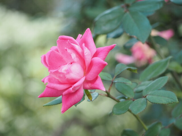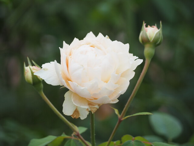秋バラは花数も少なく