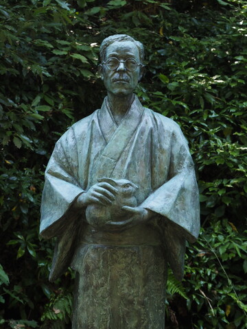 白鳥路に佇む泉鏡花像