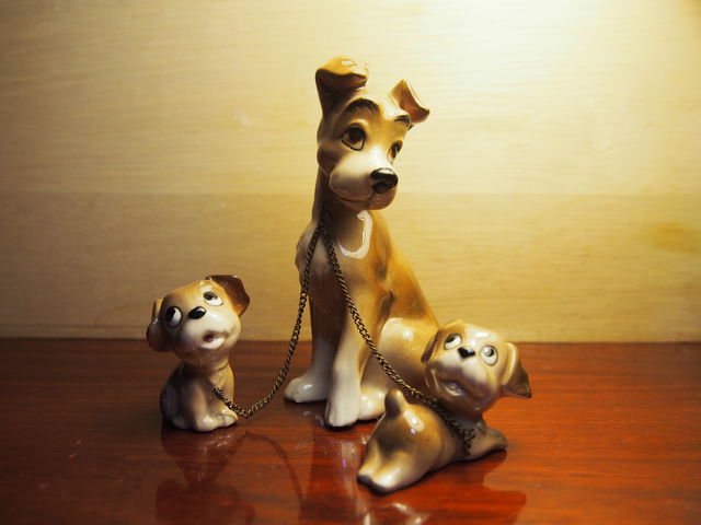陶器でできた昭和レトロなわんちゃんです。