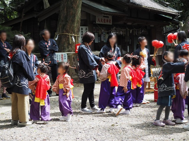 七五三のお参りのご家族連れ...