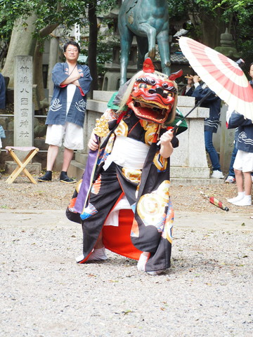 鬼子母神様に向かって